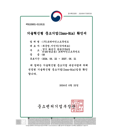 Small and Medium Enterprise with Technological Innovation (INNO-BIZ) Certification